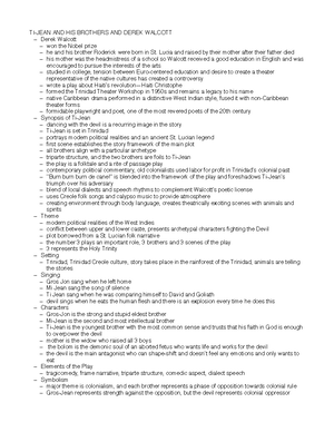 Summary Ti Jean And His Brothers And Derek Walcott Studocu