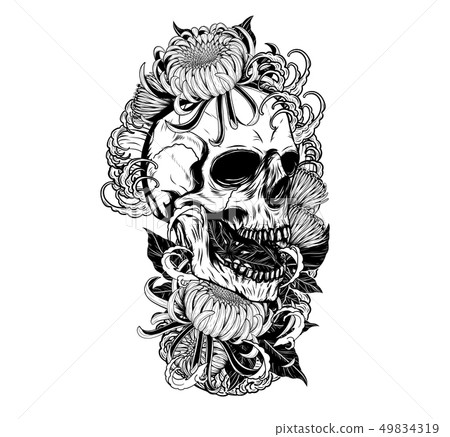 Skull With Roses Tattoo By Hand Drawing Stock Illustration