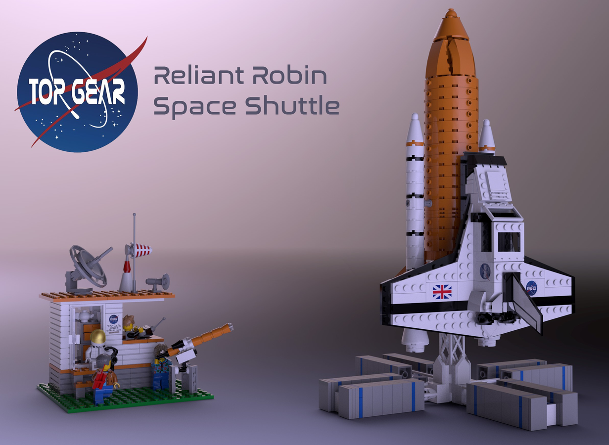 This is the Reliant Robin converted in Space Shuttle for the Series 9 of BBC Top Gear Tv Show It contains all you need for your space adventures Reliant Robin converted in Shuttle Orbiter (165 pieces) External Tank (1 pieces) Two boosters for launch (27 pieces each) Launch platform (119 pieces) Top Gear Space Technology Centre. TO JUDGE from the letters I get and the remarks in the street, it seems the most memorable thing I did on Top Gear was a short segment about the Reliant Robin You may remember I drove it around. Sitting on 10 inch wheels the Robin was the first Reliant 3wheeler to be fitted with an antiroll bar to give increased stability when cornering In 1975 the Robin received a few minor changes in its body work but the biggest change was that it was now powered by a more powerful 850cc engine which increased the power to 40 bhp and gave a top speed of 85 mph with a 0 – 60mph time of 161 seconds.
