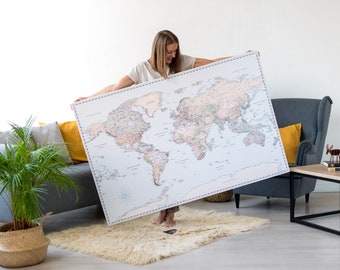 Push Pin Weltkarte Leinwand Weltkarte Wandkunst Weltkarte Etsy
