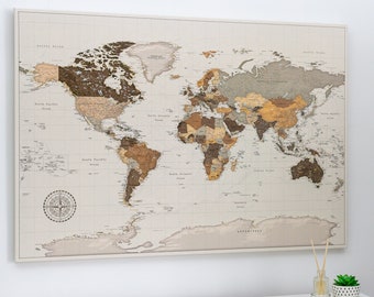 Pinnwand Karte Eingerahmte Leinwand Weltkarte Pinnwand Mit 100 Pins Braun Beige Zum Aufhangen Bereites Wandbild Gemacht Fur Pinnig 3 Grossen Zur Auswahl Amazon De Handmade