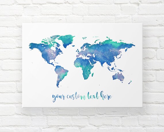 Watercolor World Map Wall Art Push Pin World Map Push Pin Etsy Map Wall Art World Map Canvas Water Color World Map