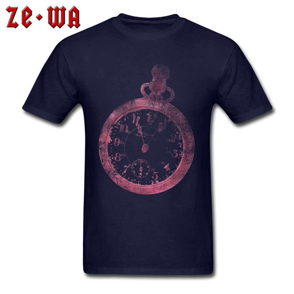 Vintage T Shirts Men Navy Blue T Shirt Crew Neck Clothes 100 Cotton Tshirts Classic Time Pretty Pink Clock Tops Tees Discount Discounted T Shirts Tee Shirt Of The Day From