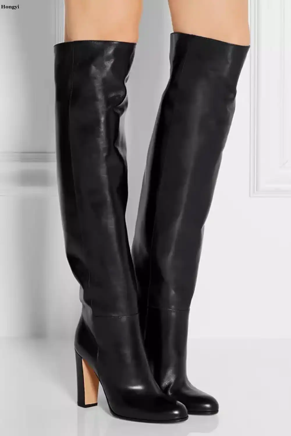 Herbst Winter Neueste Schwarze Lederstiefel Frau Runde Kappe Uber Das Knie Stiefel Dick Heels Reitstiefel Stiefel Motorrad Leder Stiefel Knee Boots Over Knee Bootsover The Knee Boots Aliexpress