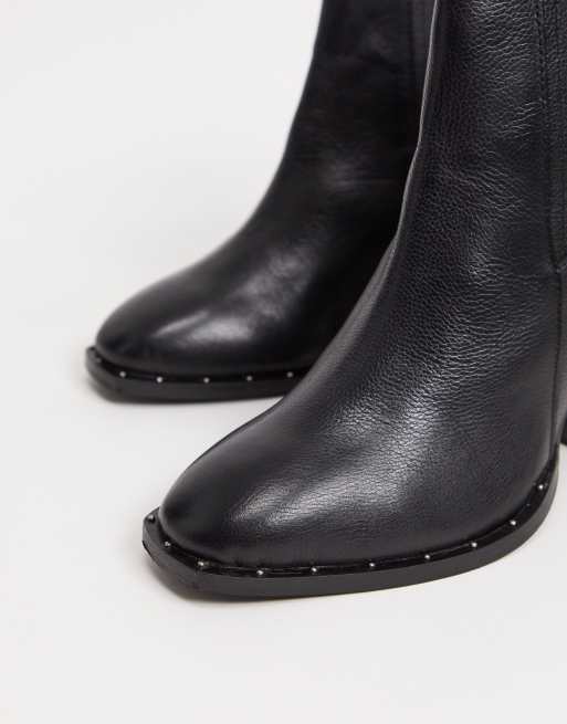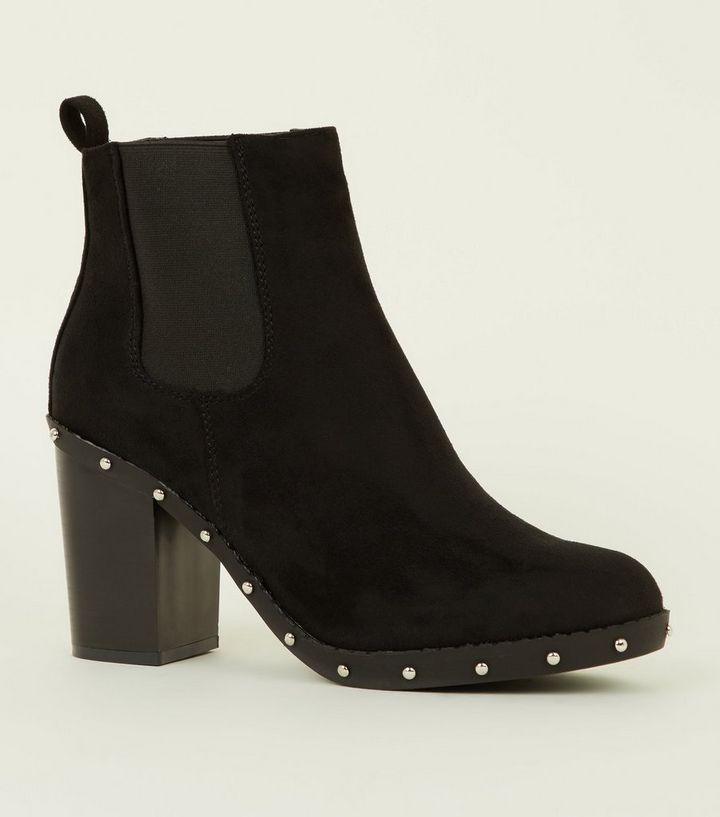 Schwarze Lederstiefel Mit Blockabsatz Und Nietensohle New Look