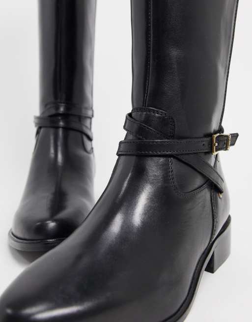 Dune True Schwarze Kniehohe Lederstiefel Mit Schnalle Weite Passform Asos