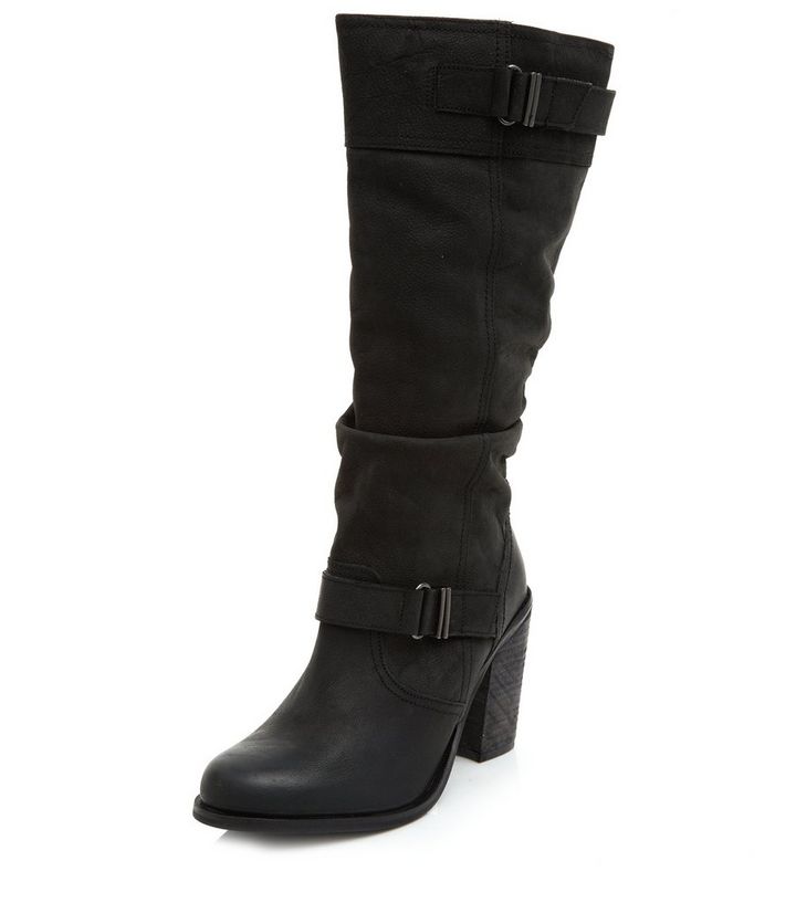 Schwarze Kniehohe Lederstiefel Mit Schnalle New Look