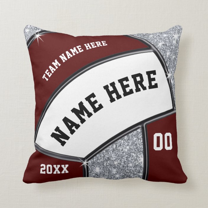 Maroon White Silver Volleyball Team Gift Ideas Throw Pillow Zazzle Com