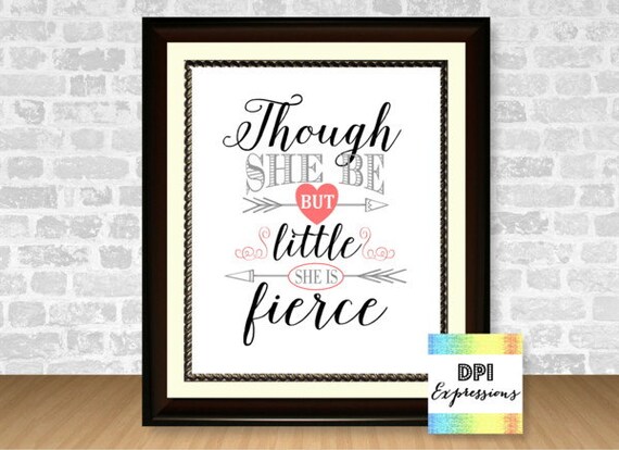 Though She Be But Little She Is Fierce Shakespeare Quote Wall Art Printable Quote Art Print Girls Nursery Room Wall Decor Digital Download By Dpi Expressions Catch My Party