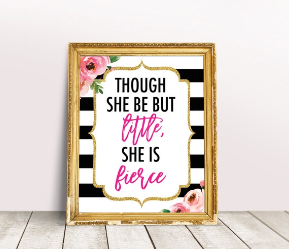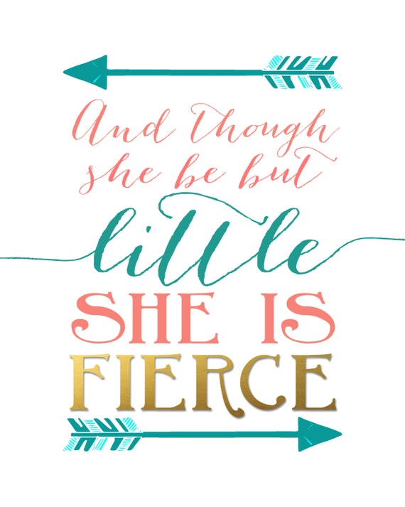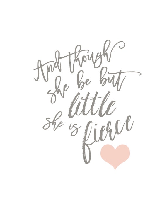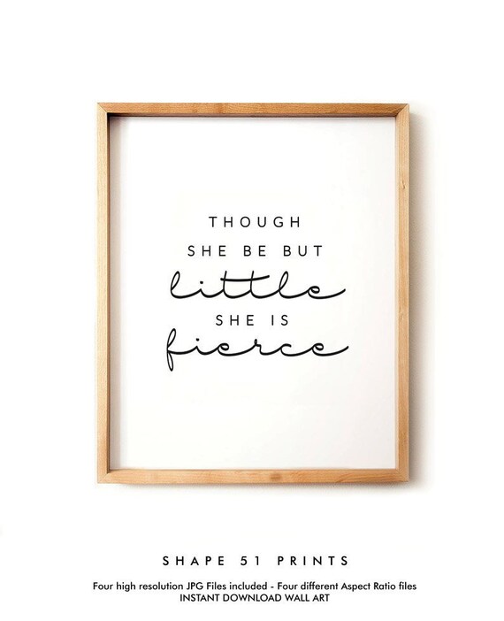“I wish it said ‘Even though she is little, she is fierce’, Mommy I don’t really understand the ‘but’ in there” I explained to my kiddo all about Shakespearean language, and then decided to surprise her with a piece of wall art in her bedroom with a revised “Beanean” version of the quote. Design Though she be but little, she is fierce. • You will receive 5 high resolution.