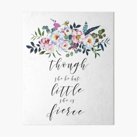 “Though she be little, she is fierce” – Shakespeare Size is no determination of strength Embrace your fiery self with encouragement from one of the greatest minds of all time This whimsical wall sign features sweet floral art and a quote from Shakespeare Sign measures 8 x 10 x 15 inches Hang on wall or display as is on a tabletop. Come check out our giant selection & find yours today. Come check out our giant selection & find yours today 35% off Tshirts, Mugs, Tote bags and More!.