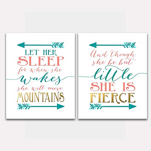 Amazon Com Nursery Wall Art And Though She Be But Little She Is Fierce And Let Her Sleep Teal Coral Unframed Handmade