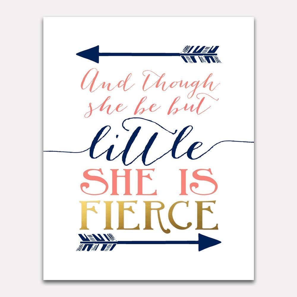 Amazon Com Though She Be But Little She Is Fierce Wall Art Wall Decor Inspirational Quotes Gold Foil Sign Motivational Design For Living Room Bedroom Or Nursery 8x10 Print From Bliss Paper