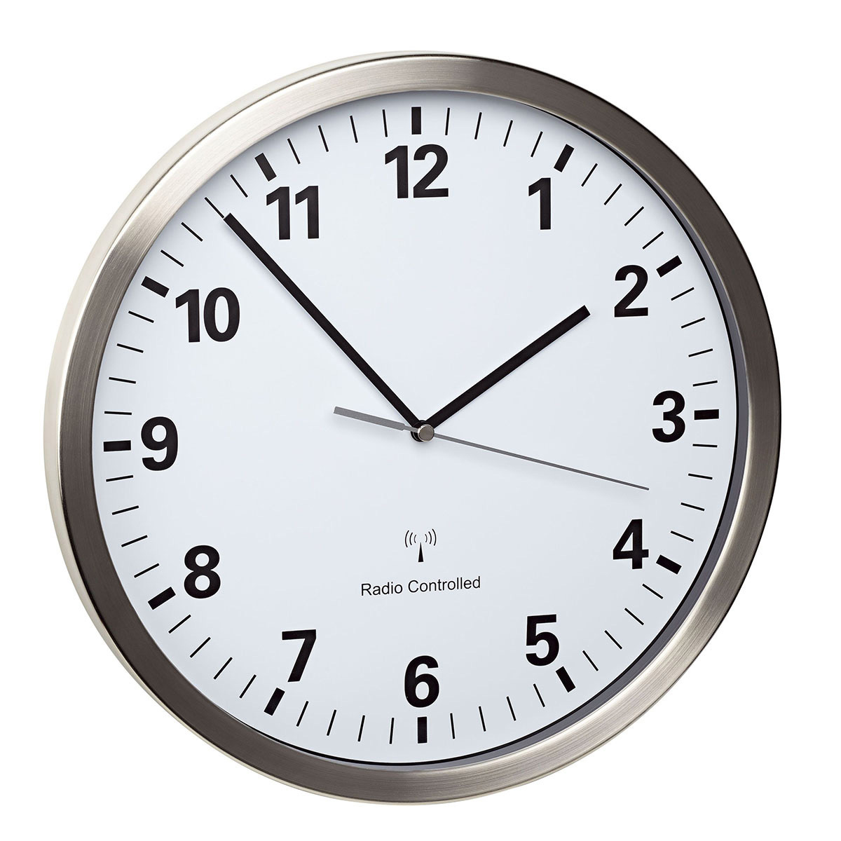 Funk Wanduhr Durchm 400 Mm Metallgehause Weissalu Ziffernblatt Weiss Balkenziffern Netzbetrieb