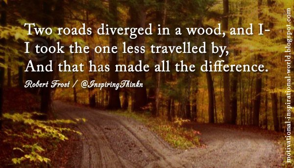 Two Roads Diverged In A Wood And I Took The One Less Travelled By And That Has Made All The Difference Inspirational Quotes