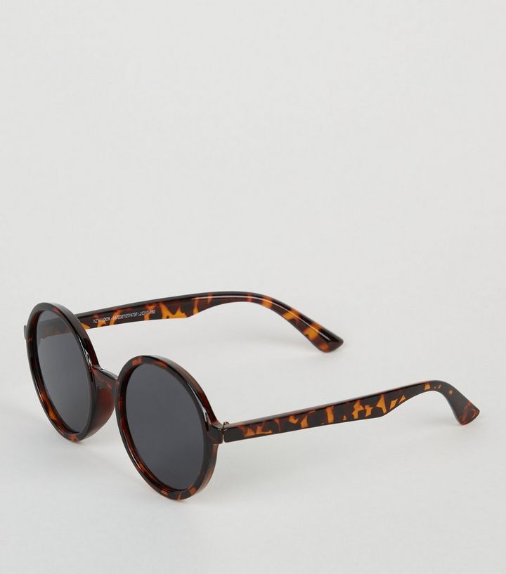 Dunkelbraune Sonnenbrille In Schildpatt Optik Mit Runden Glasern New Look
