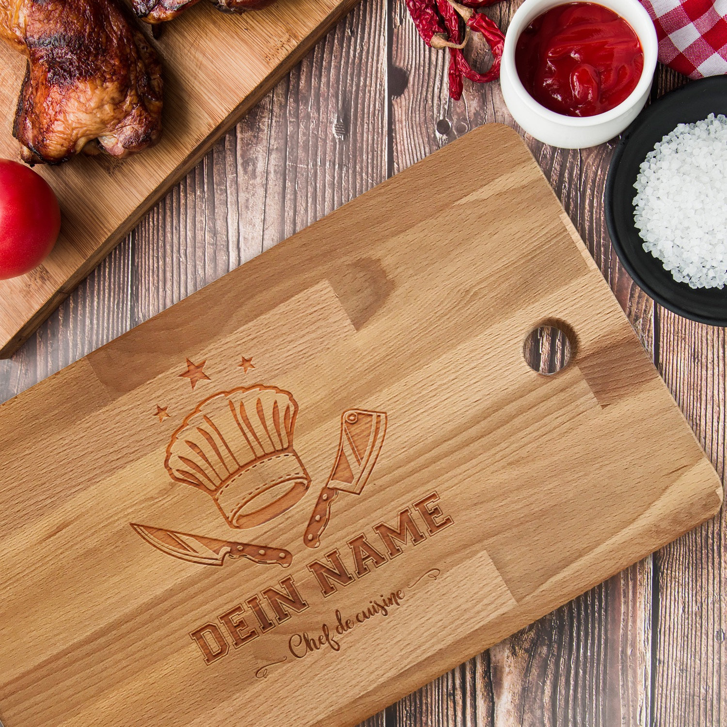 Brotzeitbrett aus Holz mit personalisierter Gravur Motiv 03 Schneidebrett graviert mit deinem Wunschnamen Geschenkidee zum Geburtstag 16,95 € Schneidebrett personalisiert Gravur Bambus o Buche CHEFKOCH Holzschneidebrett individuell graviert Namen Küchenbrett Grillbrett Geschenk Madyes 34,95. Dann haben wir hier bestimmt das Richtige für Dich das Chefkoch graviertes Schneidebrett Das Schneidebrett wird individuell mit Deinem Wunschnamen graviert, so dass das Geschenk zu einem ganz persönlichen Küchenutensil wird Das personalisierte Schneidebrett gibt es zusätzlich mit dem stimmungsvollen Hirschmotiv das macht überall eine gute Figur!. Die Burgerpresse mit Schneidebrett ist ein Set für echte Meisterköche, das einen Patty Maker mit einem personalisierten Küchenbrett kombiniert!.