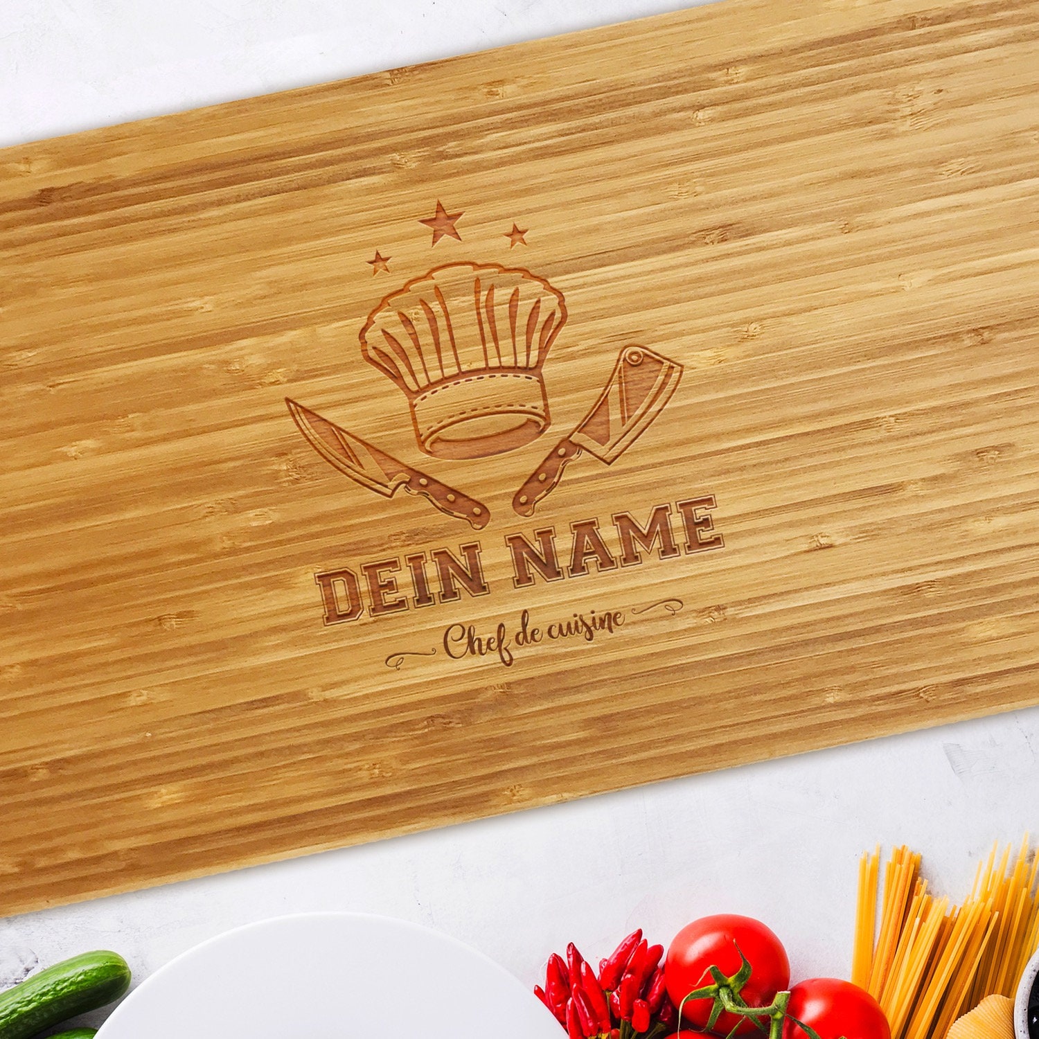 Schneidebrett mit gravur chefkoch. Schneidebrett "Küchenchef" individuell mit Ihrem Namen graviert Eine persönliche Gravur auf unserem BambusSchneidebrett, so kann der beginnen Es lässt sich sowohl als Frühstücksbrettchen, als auch zum Zuschneiden von Lebensmitteln wie Gemüse, Obst, Fleisch und Brot verwenden. Schneidebrett Schiefer mit Gravur *Chefkoch* 14,95 € * Mehr Informationen. Hier findest du wunderschöne Schneidebretter aus unbehandeltem Buchenholz, die du ganz individuell mit einem Namen gravieren lassen kannst Dank der schönen Motive und der Gravur sind.