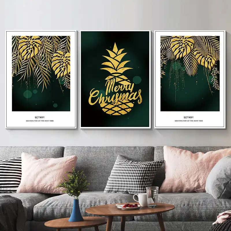 Gold Ananas Blau Hintergrund Wand Kunst Leinwand Poster Farbe Wand Bilder Fur Wohnzimmer Dekoration Bilder Morden Decor 34 Malerei Und Kalligraphie Aliexpress
