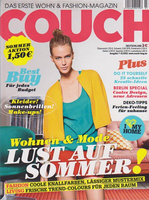 COUCH is a living & fashion magazine in a pocketsize format that closes the gap between traditional living magazines and young lifestyle magazines. WWWCOUCHMAGDE 67 Vinyl und VintageMöbel Michael und Rachel hören gern Songs aus den Zwanzigern TIPP Alte Dielen findet man bei Internet Auktionen Oder in Recyclinghöfen 68 wwWcoUcHMAGDE Gerade die Macken im Holz machen jedes Einzelstock so charmant Hocker to go Mitbewohner die. FashionMagazin im Pocketformat, diesem Thema ein 36seitiges Extraheft zu widmen, das der ab heute erhältlichen März Ausgabe beiliegt Der.