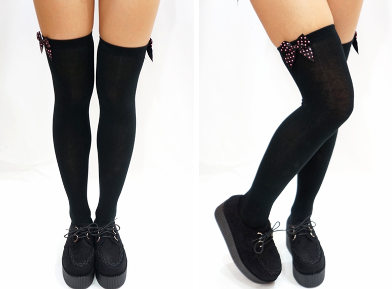 Thigh high socks with bows. We love these deceptively simple opaque nylon stockings with satin bows that are equally sexy and sweet With a bunch of color combos and the option to wear the bows at the front or back of your legs, the possibilities for wearing these feel endless!. Shop for thigh high socks online at Target Choose from contactless Same Day Delivery, Drive Up and more. Diagonal striped with bow thigh hi 4286 Multicolor print leaf thigh hi 4860WHITE/BLACK Striped top opaque thigh hi 4866WHITE/RAINBOW Rainbow Thigh High Socks 4654BLACK/PLAID Plaid bow thigh hi 4516Black Lace spandex thigh hi with satin bow 4666 Ruffle satin bow thigh hi 4098WHI/BLUE/BLK Heart print striped thigh hi.