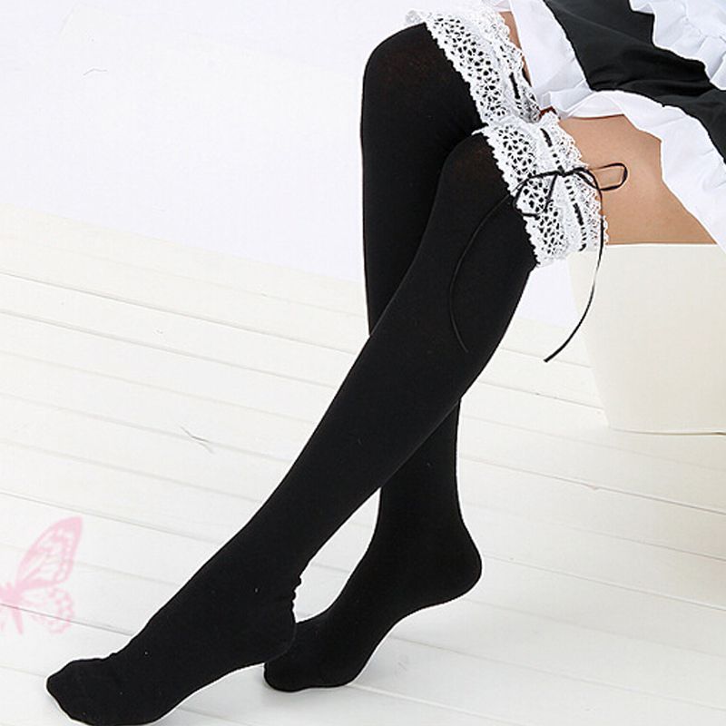Buy Black Lace Bow Lolita Lolita Socks White Socks Maid Socks Students Socks Thigh High Socks Stockings In Cheap Price On M Alibaba Com