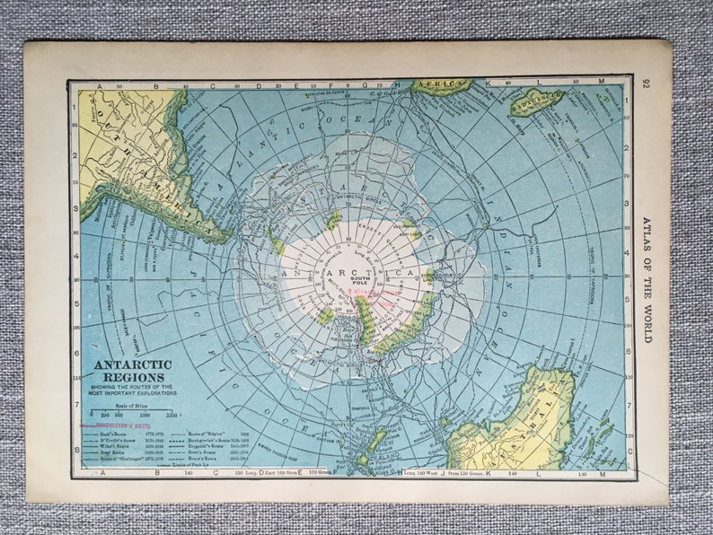 Antique Map Of The Arctic And Antarctic Regions Vintage Map Etsy