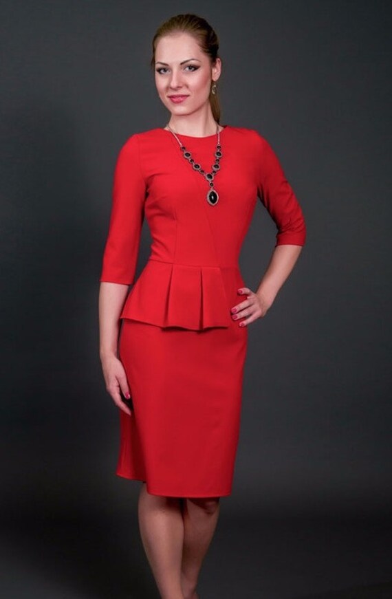 Rotes Bleistiftkleid Elegantes Kleid Mit Armeln Und Etsy