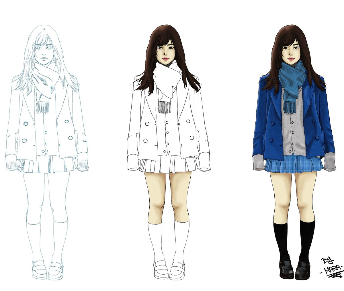 May 1, 18 Sketches of Japanese school uniforms from popular anime series eg Lucky Star, Bleach and Evangelion etc Click image for full size The all black male uniforms (with slight varieties) feature in many of the shows The female fashion seems more diversified though Based on the costumes alone I like Cardcaptor Sakura the most It’s so. Now you have a basic outline of a Japanese school girl uniform Draw the socks a bit bigger more Step 4 Now comes her face To draw an anime face, always remember the rules big eyes with a tiny nose and mouth In this drawing lets make her eyes a little further apart to give her a more innocent look. All the best School Uniform Sketch 37 collected on this page Feel free to explore, study and enjoy paintings with PaintingValleycom.