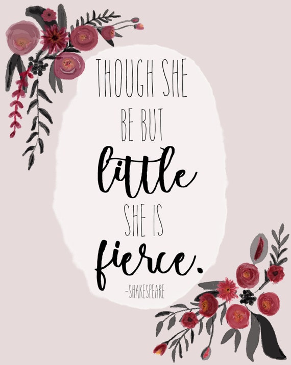 And Though She Be But Little She Is Fierce Quote Print Shakespeare Poster Inspirational Quote Nursery Fierce Quotes Inspirational Quotes Small Quotes