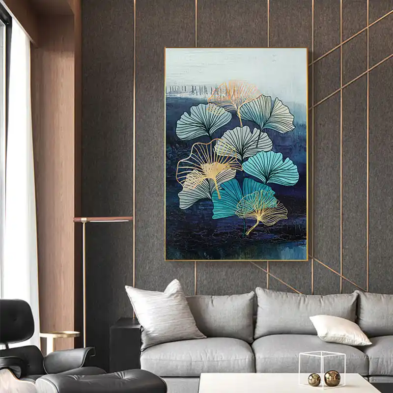 Schone Blau Poster Drucken Nordic Blau Ginkgo Blatt Leinwand Malerei Mode Wand Kunst Bild Fur Wohnzimmer Abstrakte Dekoration Malerei Und Kalligraphie Aliexpress
