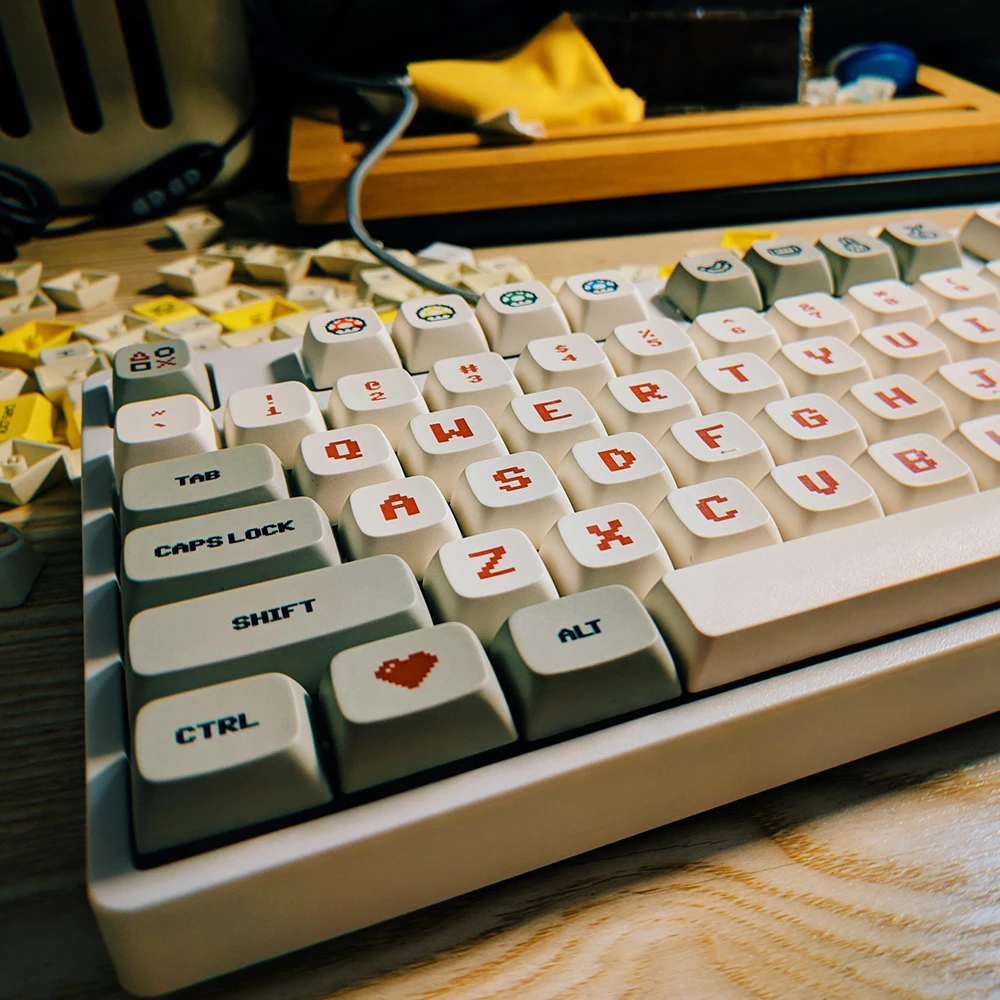 Retro Game Arcade Design White Grey Pbt Keycaps Cherry Mx Switch Mechanical Gaming Keyboard Use Np Profile Sublimation Key Caps Keyboards Aliexpress