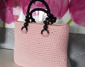 Tasche Aus Hoooked Zpagetti Mit Bambusgriffen