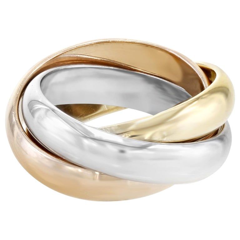 Standard Delivery 6 to 7 business days;. Springing from the imagination of Louis Cartier in 1924, this unique, movable ring was made of three interlaced bands of yellow gold, white gold, and pink gold A symbol of style and elegance, this signature ring won the hearts of both women and men, counting Gary Cooper and the famous poet Jean Cocteau among its fans These three intertwined bands represent cherished moments, feats or. Designed by Louis Cartier in 1924, the Trinity ring is a signature design of the Cartier Maison The three interlaced bands in pink, yellow and white gold symbolize love, fidelity and friendship.