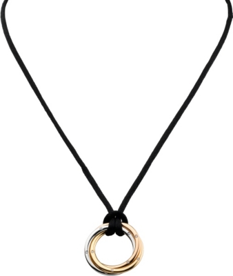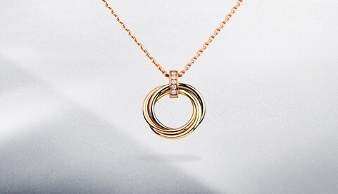 The bracelets, earrings, necklaces and rings of the Cartier Trinity jewellery collection reflect a timeless design devoted to life's memorable loves. Cartier jewelry is the expression of the jeweler’s creativity and style To find out more about these luxury objects, discover our collection of women’s threegold bracelets. From the iconic house of Cartier, this spectacular Trinity de Cartier diamond necklace is expertly crafted in 18 karat yellow gold, white gold and rose gold Three interlinked tricolor rings, one of which is diamond encrusted, are suspended from an adjustable tricolor chain measuring 18 inches in length.