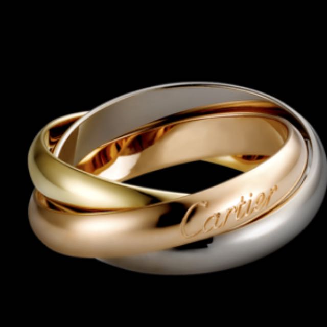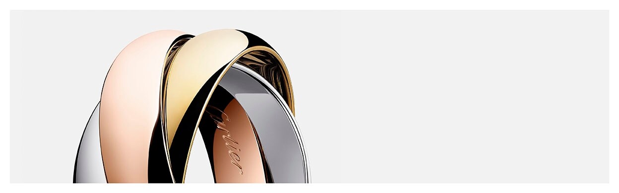 Three rings, three golds, an interconnected wedding band, a symbol of love from Cartier. Cartier jewelry is the expression of the jeweler’s creativity and style To find out more about these luxury objects, discover our collection of women’s threegold bracelets. The Trinity ring embodies Cartier's vision of design, where jewellers reveal the beauty of a shape with three simple bands With clean lines and perfect proportions, it is made up of three intertwined, mobile bands in yellow gold, white gold and rose gold The legend and the history The legend and.
