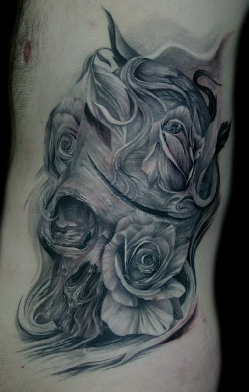 Skull And Rose Tattoos By Sebastian Nowacki