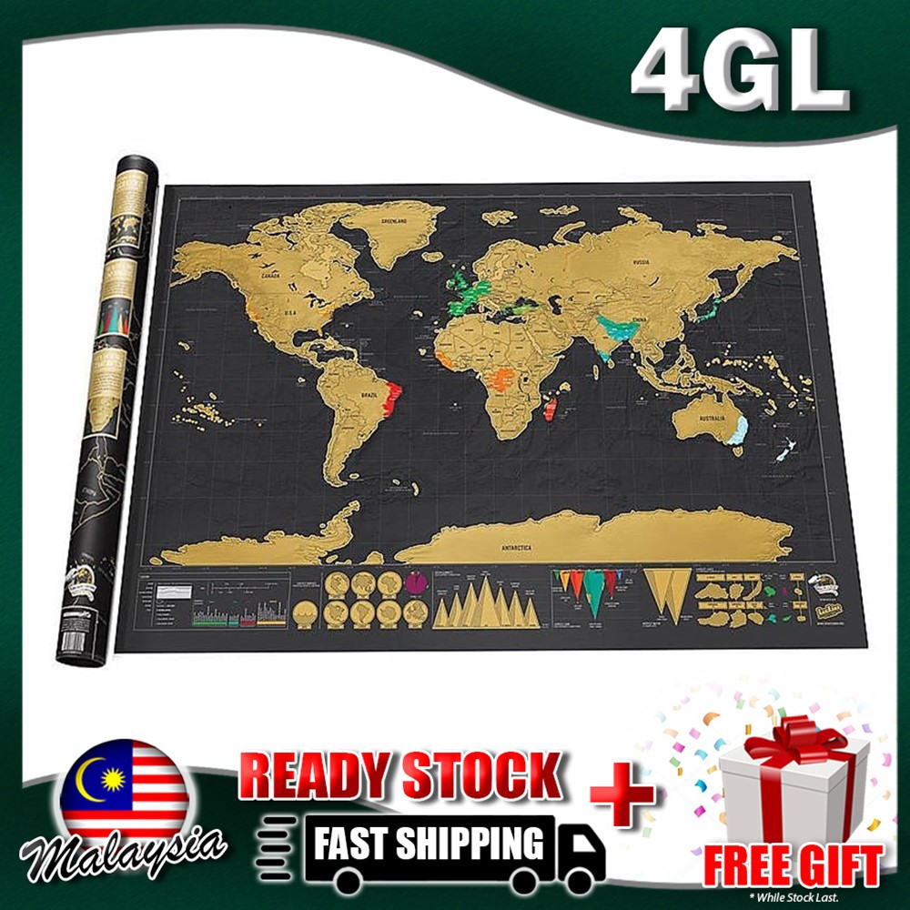 4gl Black Map Scratch Off Large Educational World Map Travel Map Wall Map Poster Shopee Singapore