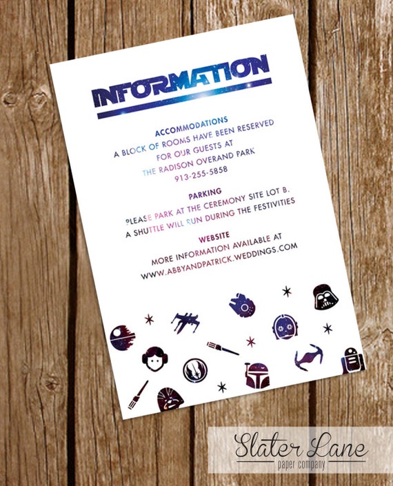 Star Wars Theme Wedding Galaxy Info Card Printable Etsy