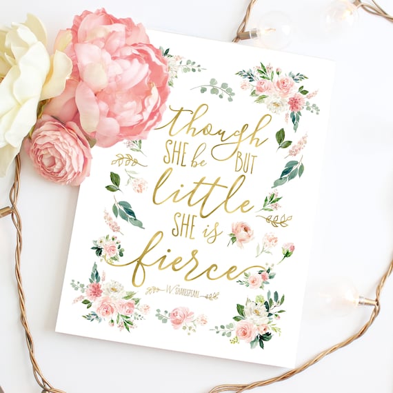 Though She Be But Little She Is Fierce Shakespeare Quote Inspirational Print Typographic Poster Faux She Is Fierce Inspirational Prints Typographic Poster