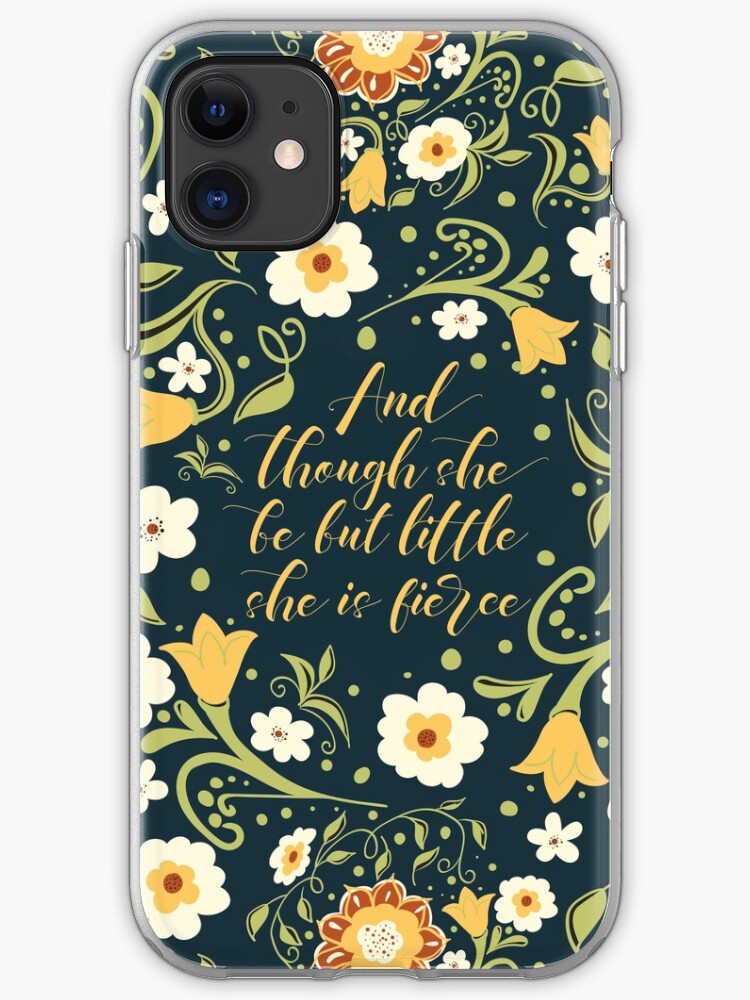 And Though She Be But Little She Is Fierce Floral Pattern Green Background Iphone Case Cover By Tej2point0 Redbubble