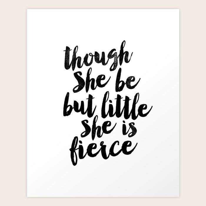Though She Be But Little She Is Fierce Black And White Typography Poster Home Decor Bedroom Wall Art Art Print By Themotivatedtype Society6