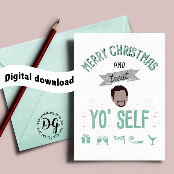 Printable Treat Yo Self Christmas Card Parks And Rec Xmas Etsy