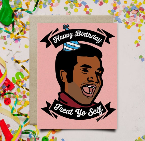 Parks And Recreation Aziz Anzari Treat Yo Self Funny Happy Birthday Ca Unwelcome Greetings