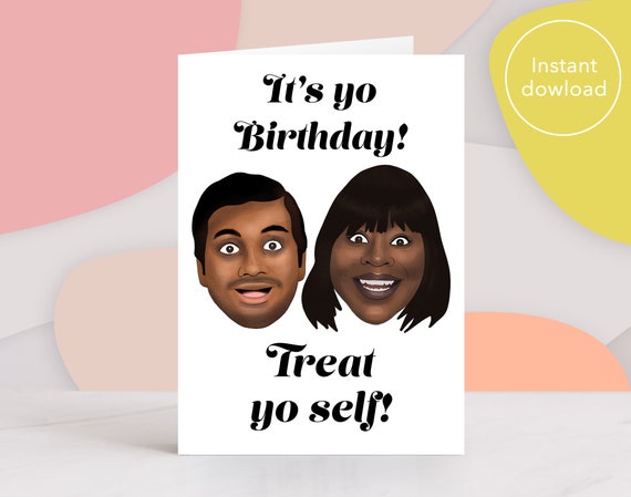 Treat Yo Self Birthday Card Downloadable Parks And Recreation Etsy