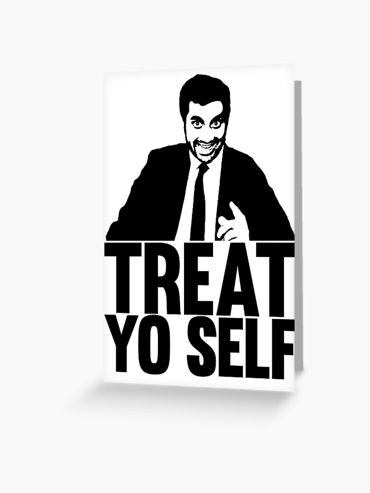 Treat Yo Self Halloween Card, 6Count $499 Quantity Front Trick or treat yo self Inside and have a Happy Halloween!. This funny birthday greeting card by justWink features quirky messaging, trendy lettering and graphics, and thick, textured paper stock. A term that originated in popular NBC television show Parks and Recreation, when Tom and Donna two financially self destructive adults that work in the Parks and Rec Department of Pawnee, Indiana decide to spend an entire day pampering and spoiling themselves However in the process end up destroying their bank accounts.