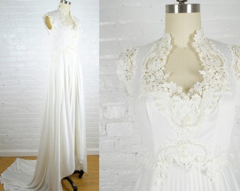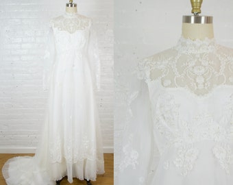 The great thing about high neck wedding dresses is that they’re totally flattering to your neck and shoulders so a high pony is a classic pairing Amp up your high neck wedding day look even more with dangling gem earrings and a short, simple necklace You can also wear a deep red lip and warmtoned eye makeup to top off your high elegance vibe. Check out our victorian wedding dress selection for the very best in unique or custom, handmade pieces from our dresses shops 1970's Swiss dot bishop sleeve wedding dress / Size small / bohemian / victorian / high neckline VivianEliseVintage From shop VivianEliseVintage 5 out of 5 stars (145) 145 reviews.