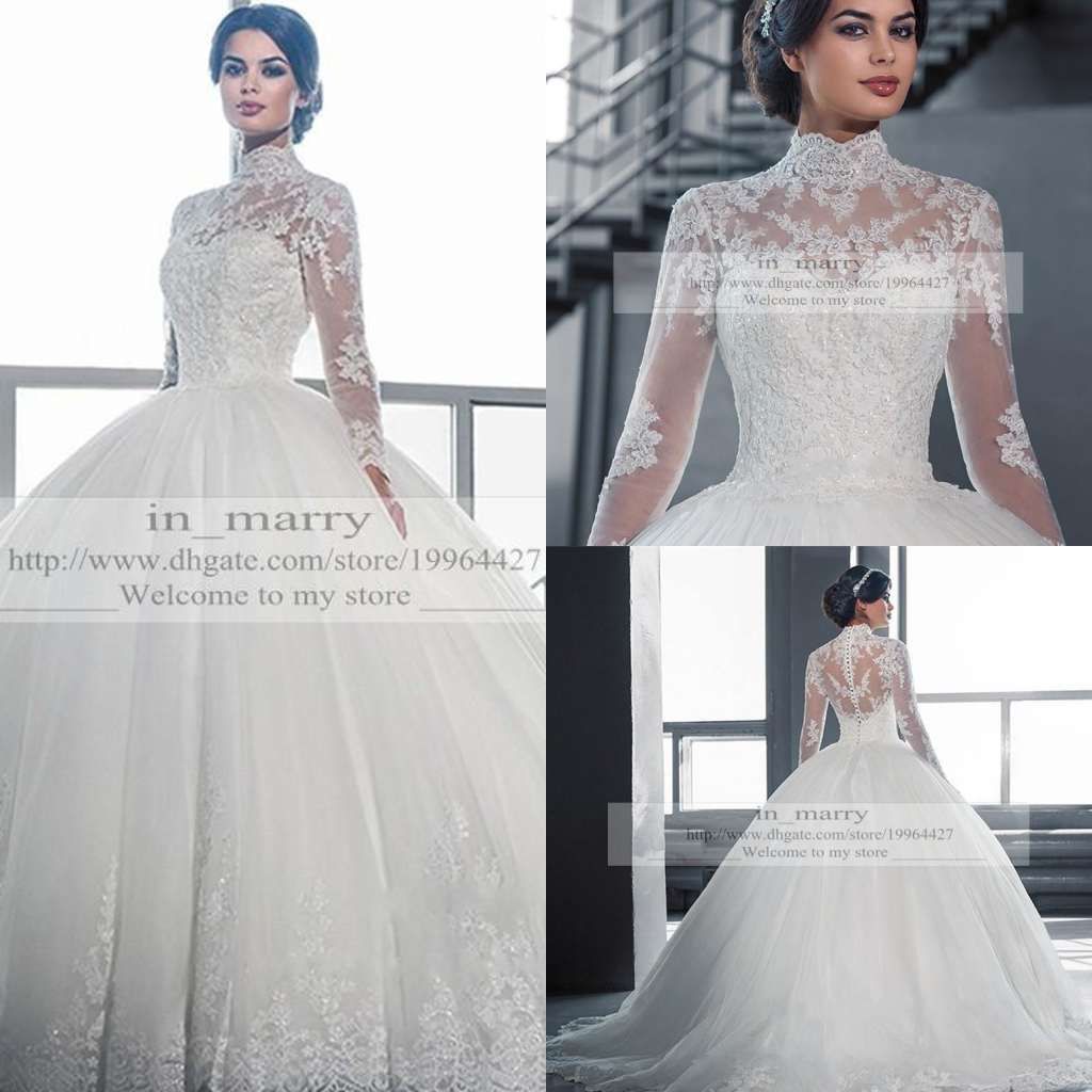 New Cheap Vintage Ball Gown Wedding Dresses Arabic High Neck Lace Appliques Beaded Long Sleeves Sweep Train Puffy Custom Formal Bridal Gowns Unusual Wedding Dresses Victorian Wedding Dresses From Crystalbridal8 150 36 Dhgate Com