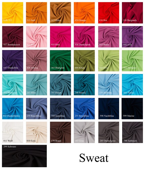Kinderstoffe, Damenstoffe, uvm als Panel oder Meterware Jersey, Sweat. Sweat Stoff zeichnet sich durch eine Vielzahl toller Eigenschaften aus, die ihn zu einem echten Allrounder machen Sweat Stoffe sind elastisch, atmungsaktiv und durch ihre meist angeraute linke Seite kuschelig zu tragen Die flexible Maschenware gewährt Dir besonders gute Bewegungsfreiheit und ist so super geeignet für Pullover, Hosen. Sweatstoffe in Uni als Meterware bei uns günstig online kaufen!.