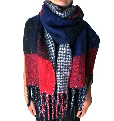 Damen Winter Schal Tuch Xxl Blau Weiss Rot Karo Kariert Fransen Poncho Warm Top Eur 9 90 Picclick De